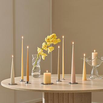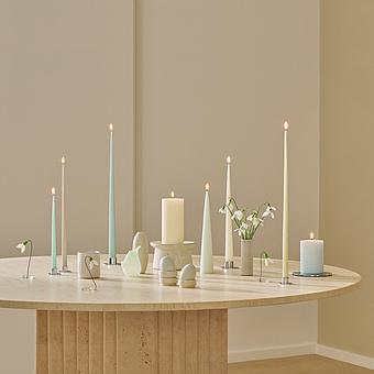 Его жена, Эстер Мёллер, взяла на себя ответственность за кропотливую окраску, идеальную лакировку и аккуратную упаковку, гарантируя, что они превратятся в те свечи, которые мы знаем сегодня, - изготовленные вручную изделия непревзойденного качества.