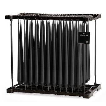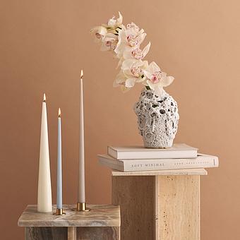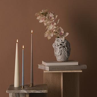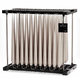 Эрик Мёллер проработал более 15 лет в свечной промышленности, прежде чем основать свою компанию. Он использовал все накопленные знания о материалах и декоре и разработал, среди прочего, машину для погружения в парафин заготовок свечей и необычный способ презентации продукции на раме. Чтобы добиться именно нужной формы, сырую коническую свечу окунают 24-25 раз в теплый парафиновый воск в зависимости от времени года и температуры окружающего воздуха в помещении, процесс занимает 4-5 часов.