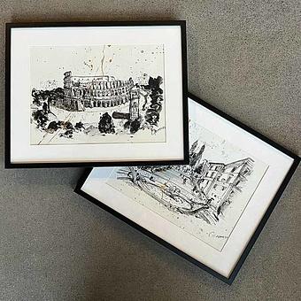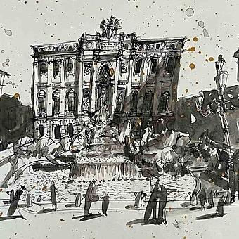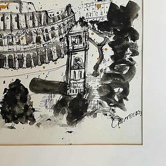Цвет, как и рисунок, художник предпочитает спонтанный, поэтому почти не пользуется кистями. В основном это самодельные приспособления, порой даже непонятно как оказавшиеся в руках в творческом порыве. Тушь – это дань традиции. Китайская тушь, английская тушь и гознаковская литографская бумага 60-х годов – гремучая смесь, материализовавшаяся в итальянскую серию.