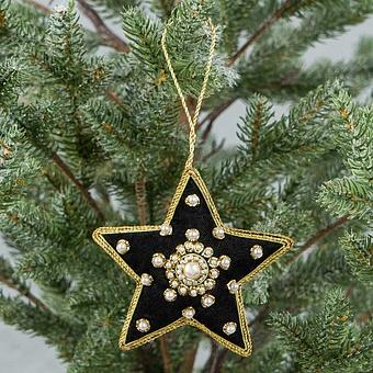 Ёлочная игрушка Black Velvet Star With Pearls 10 cm