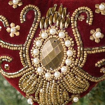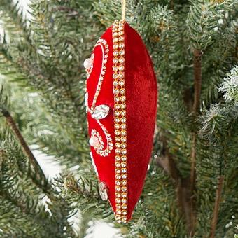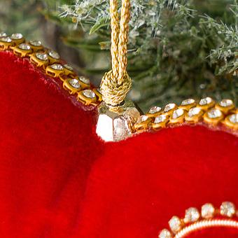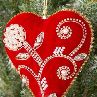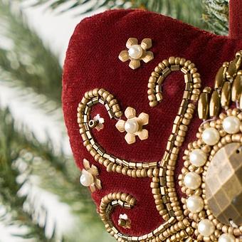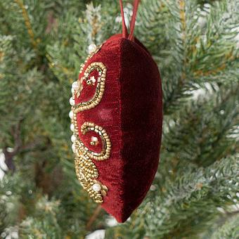 Ёлочная игрушка Beads Pattern Velvet Heart Red 12 cm