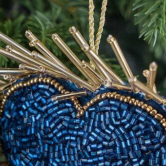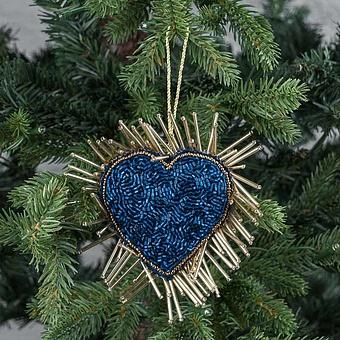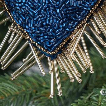 Ёлочная игрушка Bead Embroidery Heart Blue 13 cm