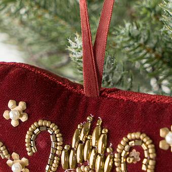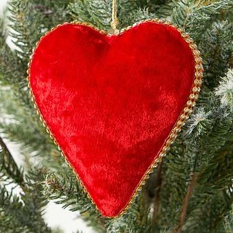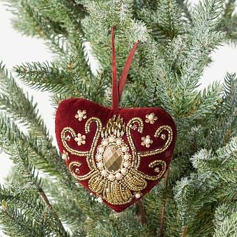 Ёлочная игрушка Bead Ornament Velvet Heart Red 10 cm