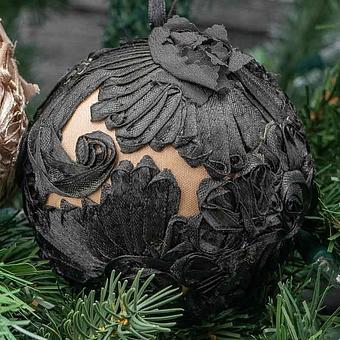 Набор из 2-х ёлочных игрушек Set Of 2 Fabric 3D Flower Balls Black/Champagne 10 cm