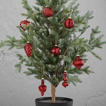 Набор из 15-ти ёлочных игрушек Set Of 15 Glass Antique Ball Pinecones Red 5 cm