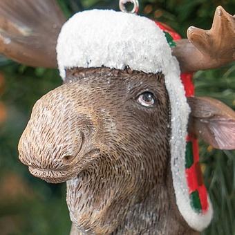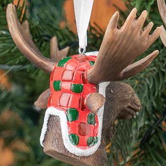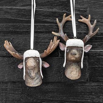 Набор из 2-х ёлочных игрушек Set Of 2 Deer And Moose Heads With Hat Brown 13,5 cm