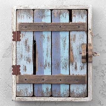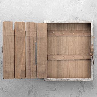 Ключница Wooden Keybox With 8 Hooks White Patina
