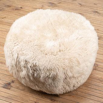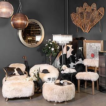 Пуфик Cave Footstool, Shiny Brass натуральный мех Yeti Beige