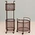 Эта сервировочная тележка в индустриальном стиле идеально рифмуется с интерьером в стиле лофт. Даже лишённая фруктов, бутылок с напитками и закусок, она будет стильным украшением гостиной, кабинета или кухни-столовой. Небольшие размеры предмета делают его соразмерным человеку и очень удобным.