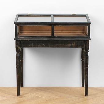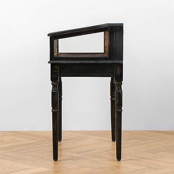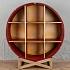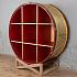 Деревянный стеллаж в виде барабана с латунным обрамлением на подставке, M
