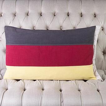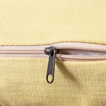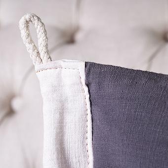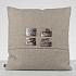 Подушка, изготовленная из плотной, прочной и износостойкой серо-бежевой льняной ткани, станет украшением любого интерьера. Уникальный дизайн включает в себя четыре перламутровые пластины, имитирующие пуговицы. Это придаёт подушке свежесть и интересный вид.