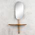 Стильный предмет интерьера, расширяющий пространство и наполняющий помещение светом - зеркало с полкой Абстракция. Высота позволяет ему легко вписаться в интерьер ванной или прихожей, а ассиметричная форма выразит вашу любовь к нешаблонным оригинальным вещам. Небольшая полка из дерева манго делает предмет функциональным. Железная рама, обрамляющая зеркальную поверхность, контрастирует с тёплым цветом дерева.