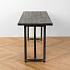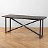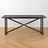 Каркас выполнен из металлических элементов чёрного цвета с эффектом потёртости, которые образуют устойчивую конструкцию. Под столешницей расположен металлический крест, который добавляет столу прочности и служит декоративным элементом.
