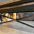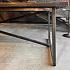 Каркас выполнен из металлических элементов чёрного цвета с винтажным эффектом потёртости. Особенностью дизайна является металлическая перекрестная конструкция под столешницей, которая добавляет столу устойчивость и интересный визуальный акцент.