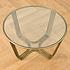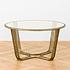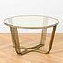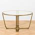 Стеклянная столешница и изысканно изогнутые ножки из железа латунного цвета рождают невероятно стильный круглый журнальный стол Ар-нуво, небрежно элегантный и аристократически утончённый. Сочетание прозрачного стекла и металла латунного цвета, простота и лаконичность форм приковывают взгляд и поражают воображение.