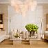 Чувствительная к постулатам этого стиля, большая люстра Asinara из стекла и металла распространяет тёплое и лучистое сияние 13 лампочек. Уникальный светильник ручной работы привнесёт в интерьер обаяние ретро, декоративность, роскошь сочетания античной латуни и трёх ярусов текстурированного стекла, нарядные пластины которого напоминают заиндевевшие лепестки цветка.