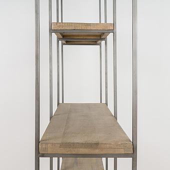 Стеллаж Ассамблея из железа и дерева отчасти напоминает бессмертное творение инженера Эйфеля - Эйфелеву башню. То же переплетение скрещенных под острыми углами деталей, те же металлические заклепки в местах крепления деревянных полок. В этом предмете мебели стильность сочетается с функциональностью. Четыре вместительные полки готовы принять ваши книги, фотографии в рамках, вазы и предметы декора.
