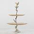 Двухуровневая сервировочная подставка с птицами и золотистым стеклом
