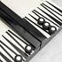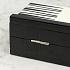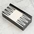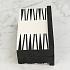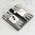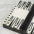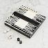 Доска для игры в нарды искусно изготовлена из прочного полирезина. На белом фоне контрастно выделяются черные полосы. Фигурки также выполнены в двух цветах. Шарнирную конструкцию изделия можно использовать как доску для игры и как ящик для хранения фишек. Удобный размер позволяет взять игру в дорогу.