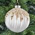 Этот бронзовый шар, чуть тронутый морозным инеем золотистого цвета, добавит новогоднему декору обаяние стиля ар-деко. Выразительная ёлочная игрушка особенно красива на фоне зелёной хвои.