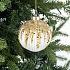 Белый шар, чуть прихваченный инеем золотистого цвета - эффектная и выразительная ёлочная игрушка. Она будет хорошо смотреться и на фоне зелёной хвои, и в композиции на каркасе для новогодних украшений в виде серебристого дерева.