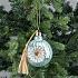 Нежно-бирюзовый шар с жёлтой кистью - оригинальная ёлочная игрушка. От других новогодних украшений его отличает небанальная деталь - круглое окошко в виде цветка, декорированное бусинами.