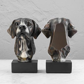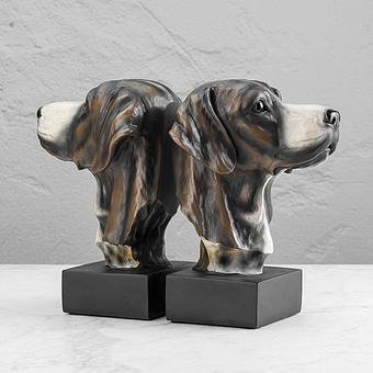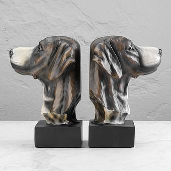 Практичное и стильное решение для организации библиотеки или рабочего пространства обеспечит чудесный набор из двух держателей в виде очаровательных фокстерьеров. Собаки сидят на книгах как живые, настолько детально прорисованы все тонкости этой породы. Чёрный окрас ушей и части морды, карие глаза, а также красный ошейник, выделяющийся на белой шерсти, добавляют привлекательности фигуркам.