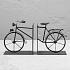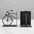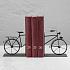 Винтажная фигурка велосипеда с потёртой поверхностью железа прикреплена к подставке, которая прекрасно справляется с удержанием любого количества книг в порядке.