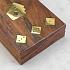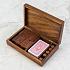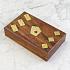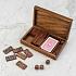 Деревянная с латунью шкатулка с набором домино, колодой игральных карт и костями