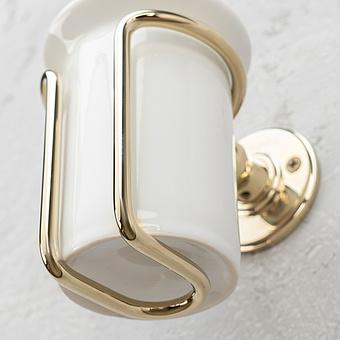 Настенный белый держатель с ёршиком в подставке золотого цвета
