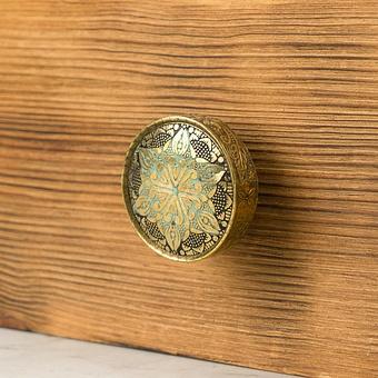 Медный блеск этих мебельных ручек отражает свет в пространстве и придаёт таинственность. А уж практичность и надежность говорят сами за себя.