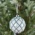 Ёлочная игрушка Клетчатый белый шар с бусинами
