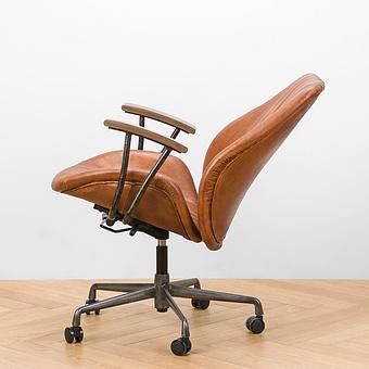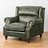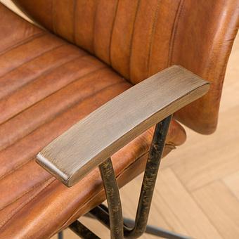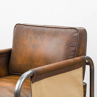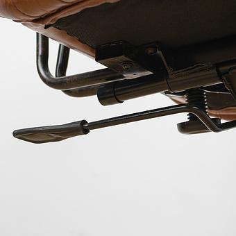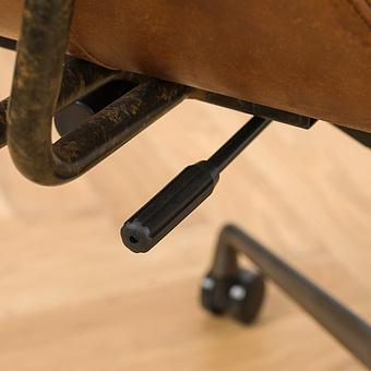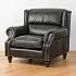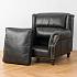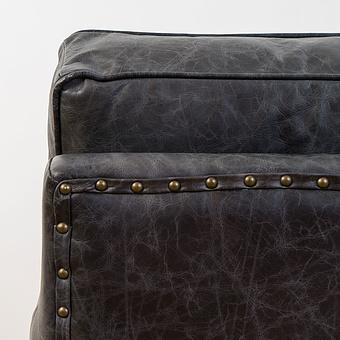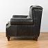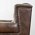Роскошь натуральной кожи обивки подчеркнута металлическими гвоздиками. В конструкцию кресла входит пружинная система. Она долговечна, выдерживает большие нагрузки и подстраивается под форму тела.