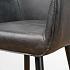 Ножки стула изготовлены из тёмной древесины, контрастирующей с металлической фурнитурой. Подножка обеспечивает надежную поддержку и добавляет элегантности дизайну стула.