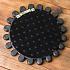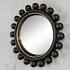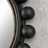 Этот небанальный предмет, дополняющий интерьер и искривляющий пространство, сложно представить где-то кроме гостиной в стиле лофт. Выпуклое зеркало с чёрными шарами отчасти напоминает иллюминатор на океанском лайнере. Но чёрные словно треснувшие шары, обрамляющие окно в Зазеркалье, рождают другие ассоциации. Часть механизма или ритуальный предмет? В любом случае зеркалу подойдёт декорация в виде необработанной кирпичной кладки и металлических деталей на потолке.