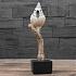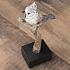 Статуэтка небольшой лесной хохлатой синицы мастерски выполнена из полирезина. Переданы серовато-белые оттенки с примесью светло-коричневых тонов с чёрным узором на голове. Выразительные карие глаза внимательно осматривают пространство. Видно каждое чётко прорисованное пёрышко. Синица стоит на ветке, уходящей в устойчивую подставку.