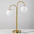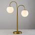 Элегантная настольная лампа из железа золотистого цвета с двумя круглыми плафонами поможет вам сделать вашу работу удобной и плодотворной. Два плафона из белого стекла рассеивают комфортный свет, который не раздражает глаза. Светильник в изысканном стиле ар-деко придаст изящество и законченность вашему интерьеру.