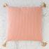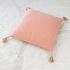 Декоративная розовая подушка с джутовыми кисточками