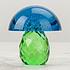 Оригинальное, даже экстравагантное изделие в виде декоративного гриба впечатлит самых искушенных ценителей необычных вещей. Универсальный аксессуар искусно изготовлен из качественного хрустального стекла. Использовано эффектное цветовое сочетание насыщенного синего с ярким светло-зелёным. На шляпке красиво выделяются пузырьки, а ножка фактурная, рифлёная. Изделие долговечно и удобно в уходе.