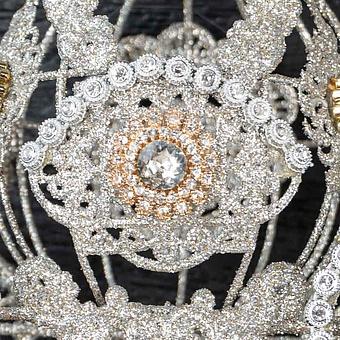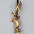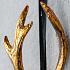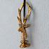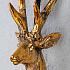 Любимый всеми охотниками трофей - бюст оленя - трансформировался в ёлочную игрушку. Изысканное гордое животное золотистого цвета украшено ожерельем с фиолетовой бусиной. Деликатно состаренный бюст высотой 20 см на чёрном шнурке придаст нотку аристократизма вашему новогоднему убранству.