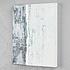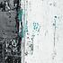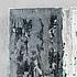 Полотно визуально разделено на две основные части. Левая часть тёмная, насыщенная серыми и чёрными оттенками с фактурной проработкой. Вертикальные мазки, рельефные наслоения краски и включения изумрудных акцентов создают ощущение плотной материи, как будто это фрагмент бетонной стены, камня или глубокой тени. Правая часть почти полностью белая, с лёгкими серебристыми вкраплениями потали. Поверхность выглядит выветренной, лёгкой и эфемерной. Она создаёт впечатление тумана, света или пустоты, в которую уходит взгляд зрителя. Между двумя зонами есть узкая переходная полоса серых и зеленоватых штрихов, как будто граница между материальным и нематериальным, известным и непонятным.