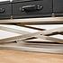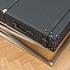 Оригинальный журнальный столик Экипаж напоминает чемодан, лежащий на подставке в номере отеля. Гость только что заехал и сейчас займется распаковкой вещей. Стильная столешница столика с тремя выдвижными ящиками отделана натуральной кожей чёрного цвета. Кожаные ручки и ремни напоминают детали чемодана.