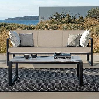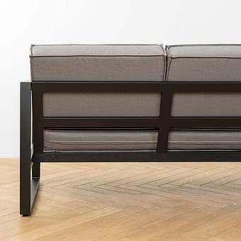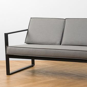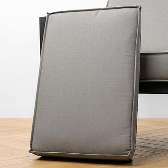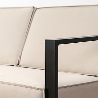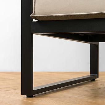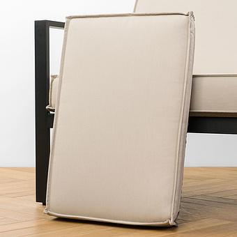 Сочетание строгих прямых линий, мягкости сиденья и спинки рождает гармоничный и стильный предмет мебели. Он выдержит любые изменения погоды: грозу, сильный дождь, прямые солнечные лучи. В этом ему поможет состав наполнителя - полиэфирное волокно и быстросохнущая пена, а также материалы обивки - акриловая ткань и текстилен.