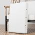Съёмные подушки сделаны из специальной прорезиненной ткани белого цвета, обладающей отличным влагозащитным свойством. Легко чистится и за счёт водоотталкивающего покрытия может использоваться на улице.