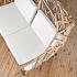 Очаровательный, разрывающий все шаблоны, двухместный диван украсит террасу вашего дома. Неожиданное сочетание морёной древесины, нержавеющей стали со спинкой и сиденьем белого цвета рождает удивительный образ то ли беседки, то ли грота, то ли шатра. Дерево, отшлифованное волнами Атлантики, создаёт для вас уютное убежище от житейских тревог и невзгод. И чем оно эфемернее, тем сильнее защита.