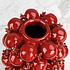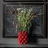 Использование ярко-красных гранатов в оформлении вазы очень креативно. Глянцевая поверхность плодов шаровидной формы бликует на свету, что придаёт изделию очарование и красоту.