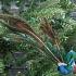 Райская птица, распушив хвост из настоящих перьев павлина, опустилась к вам на новогоднюю ёлку и надёжно укрепилась на ветке с помощью прищепки на задней части игрушки.