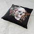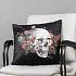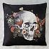 Декоративная подушка с изображением черепа с цветами очень необычна и привлекает внимание. Чёрный цвет лицевой части выигрышно подчёркивает символический принт. Высококачественное нанесение рисунка позволяет сохранить яркость изделия даже после множества стирок.