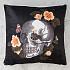 Декоративная подушка с изображением черепа с цветами очень необычна и привлекает внимание. Чёрный цвет лицевой части выигрышно подчёркивает символический принт. Высококачественное нанесение рисунка позволяет сохранить яркость изделия даже после множества стирок.
