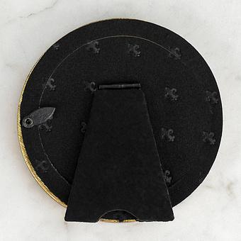 Выполнена из прочного и долговечного полирезина. Изящная резная форма в виде завитков листьев делает изделие прекрасным декором. Оснащена ножкой-подставкой для устойчивого размещения на письменном столе, каминной полке, туалетном столике.